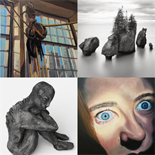 Artwork by: (clockwise) Ben Laird, Blocks; Ethan LeJeune, Standing Stones; Rory Kenney, Be There; Tia Camire, Prey